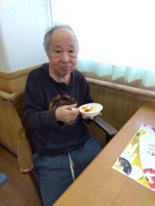 敬老の日に喫茶レクリエーションとしてプリンアラモードを提供させていただきました。